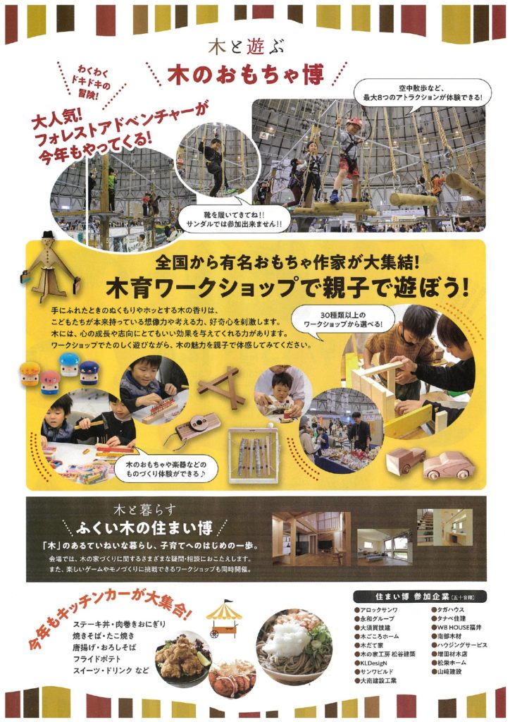 みなさんこんにちは(^^)河村です。今週末、13日(土)14日(日)に福井県産業会館にて【フクモクフェス2025】が開催されます‼大人気の『木のおもちゃ博』がやってくるそうですよ~(#^.^#)