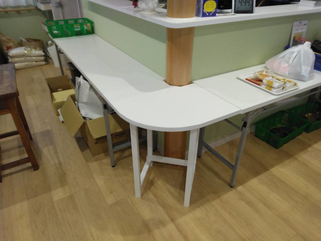 写真の様に、長机と長机の間のコーナー用の机が必要とのこと。