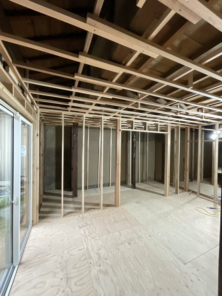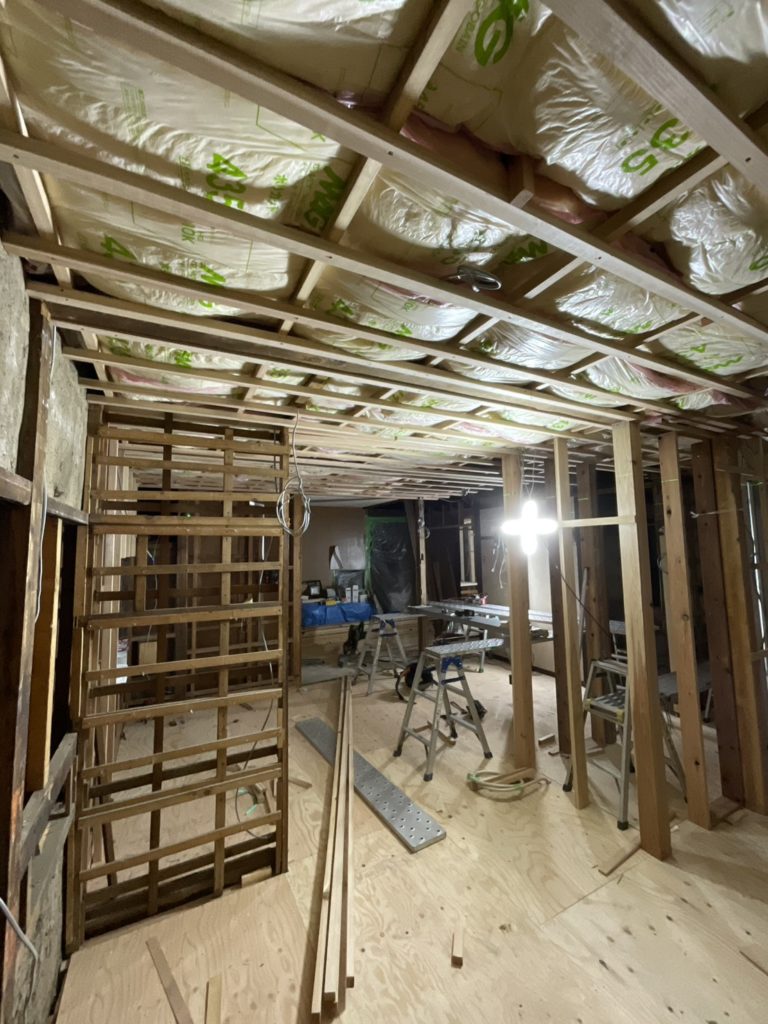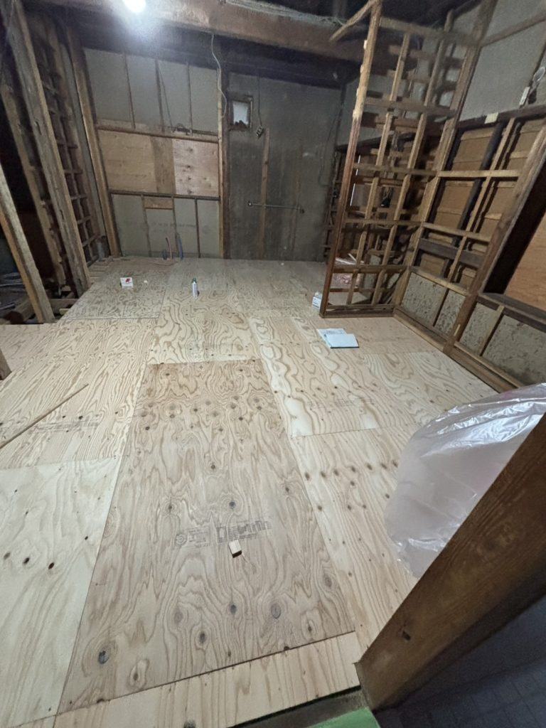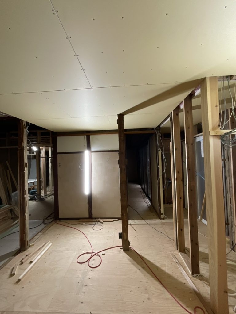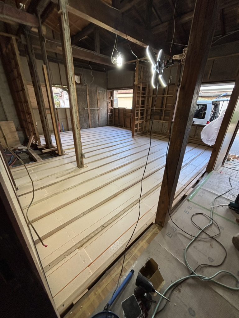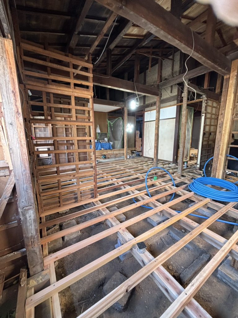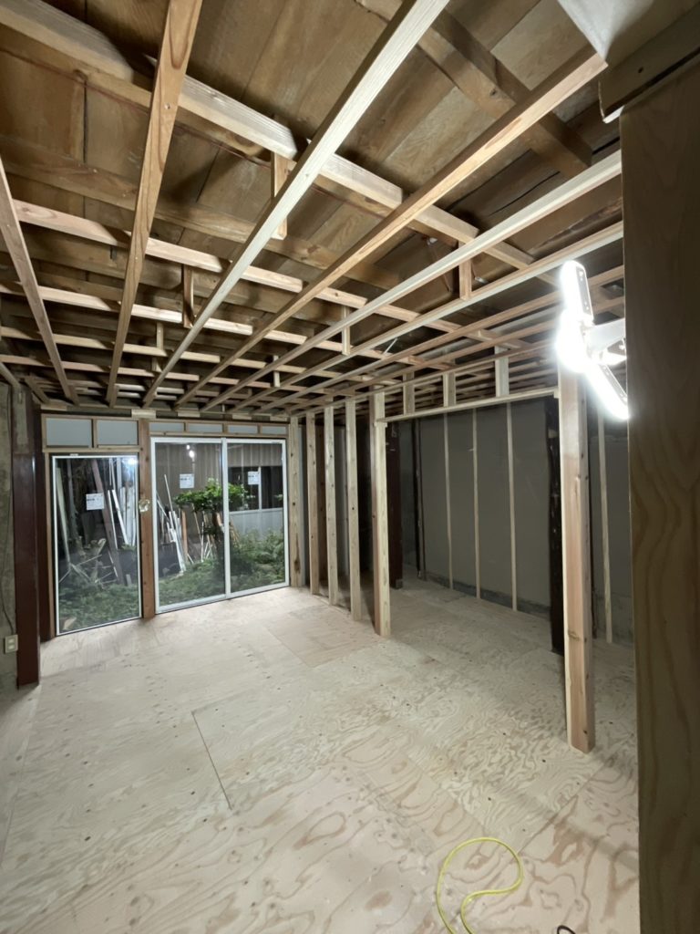 解体→配管等工事→木下地工事→断熱材布設→床下地・天井下地工事→仕上げ工事