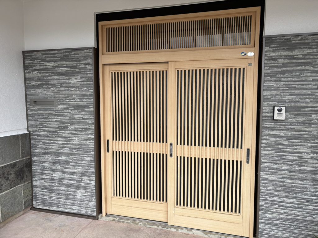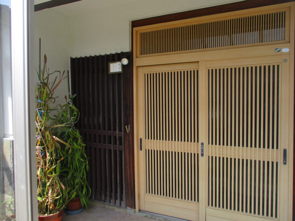 玄関戸の左右にあった、格子部分もサイディングで張替え、素敵な玄関に生まれ変わりました(^^)