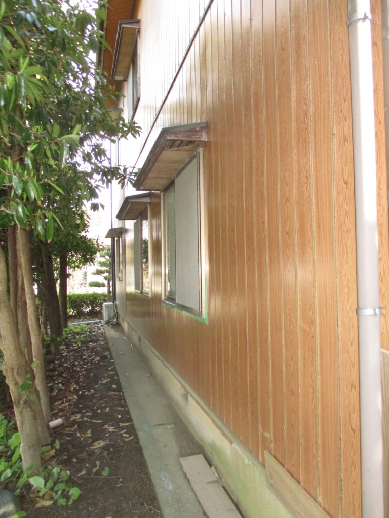外壁の板張り部分は、板金貼りに、既存の板金部分とリシン部分は塗装し直しました。