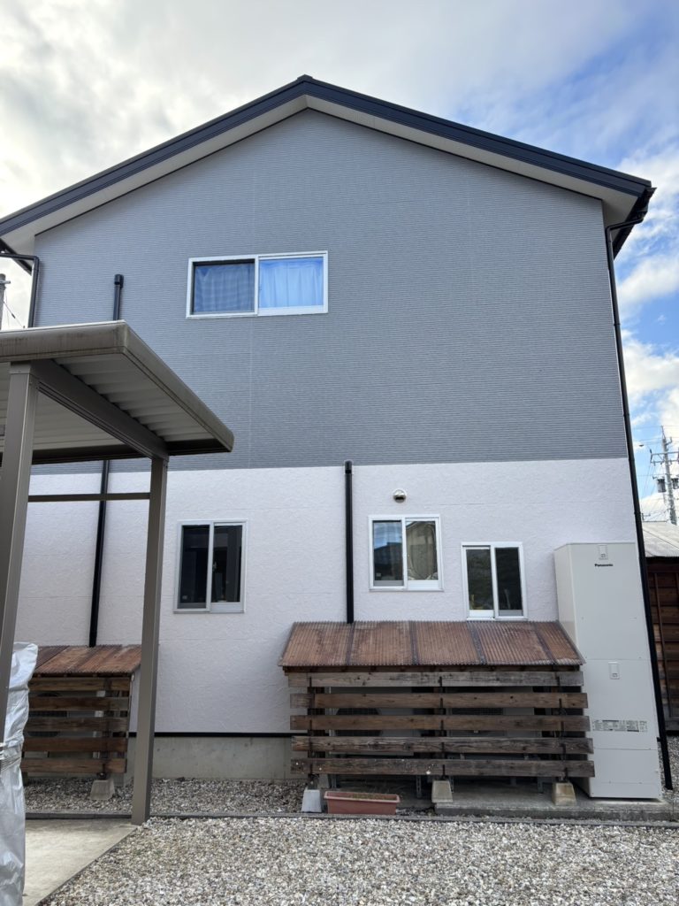 外壁➡高圧洗浄、下塗り、上塗り2回で工事をしました。