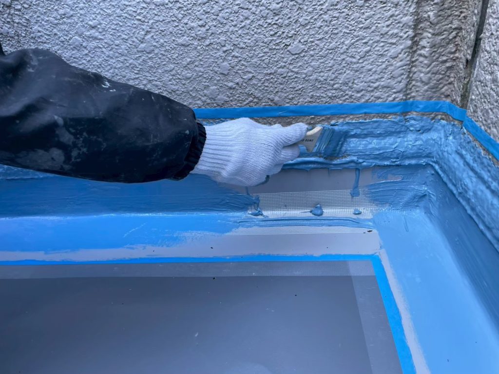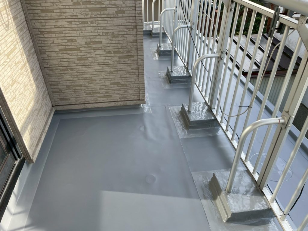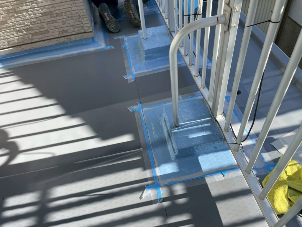 また、ベランダフェンスの架台廻りも、ウレタン塗膜の防水工事をしました。